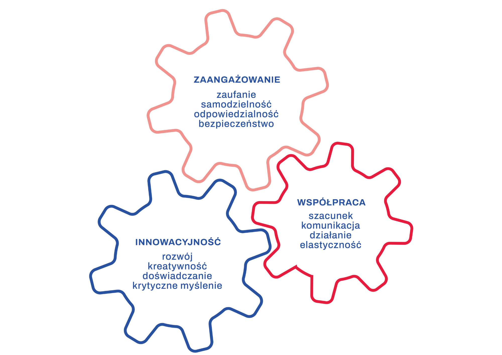 Tworzymy miejsce przyjazne do odkrywania i realizacji potencjału dzieci, wspierające rodziców i opiekunów, a także umożliwiające rozwój zawodowy pracowników. Chcemy kreować postawy i kształtować kompetencje, które pozwolą dzieciom osiągać sukcesy w dorosłym życiu.